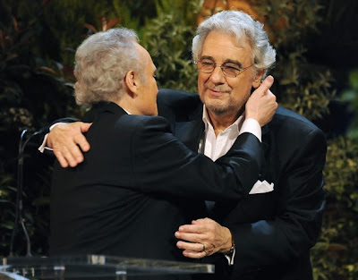 Royal Albert Hall, 14.05.09: il pubblico accoglie calorosamente il tenore (per il quale sono qui a scrivere ora, con sole quattro ore di sonno alle spalle, e per il quale siete qui voi ora a leggere) presente er ricevere il Lifetime Achievement Award, accompagnato da due "amici di vecchia data", ossia Plácido Domingo, come già si sapeva, e il soprano Kiri Te Kanawa.